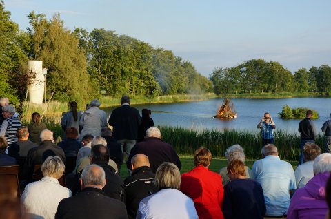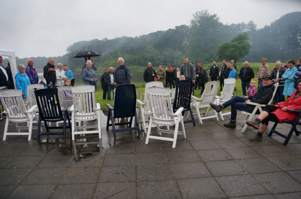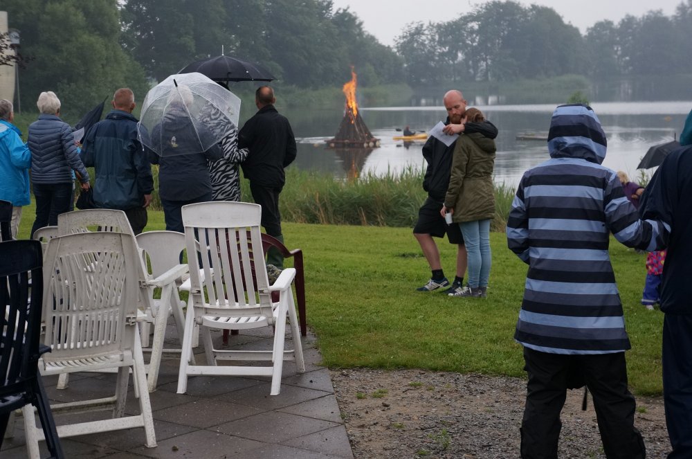 Sankt Hans aften 2016 - en våd affære, der var tæt på aflysning. Alligevel dukkede ca. 75 tilhørere op til tale og bål...